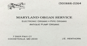 - Ed Henthorn starts “Sight and Sound Service”, soon changed to Maryland Organ Service.