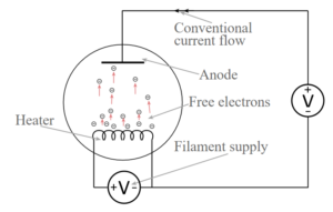 An oxide-coated cathode can’t heat itself, and it has to be hot to emit electrons. So, a wire filament heater is inserted within the cathode. This heater has to be coated with an electrical insulation that won’t burn up at the high temperatures, so it is coated with powdered aluminum oxide. This is an occasional cause of failure in such tubes; the coating rubs off or cracks, so the heater can touch the cathode. This can prevent normal operation of the tube. And if the heater is running from AC power, it can put some of the AC signal into the amplifier’s output, making it unusable in some applications. Good-quality tubes have very rugged and reliable heater coatings.